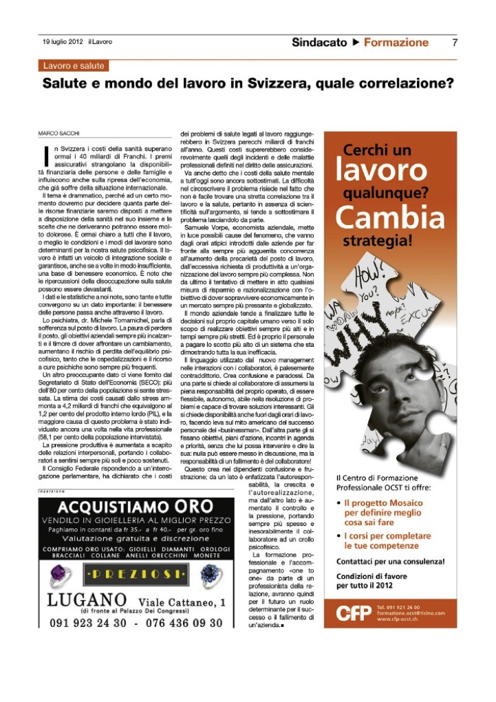 Salute e mondo del lavoro in Svizzera, quale correlazione?